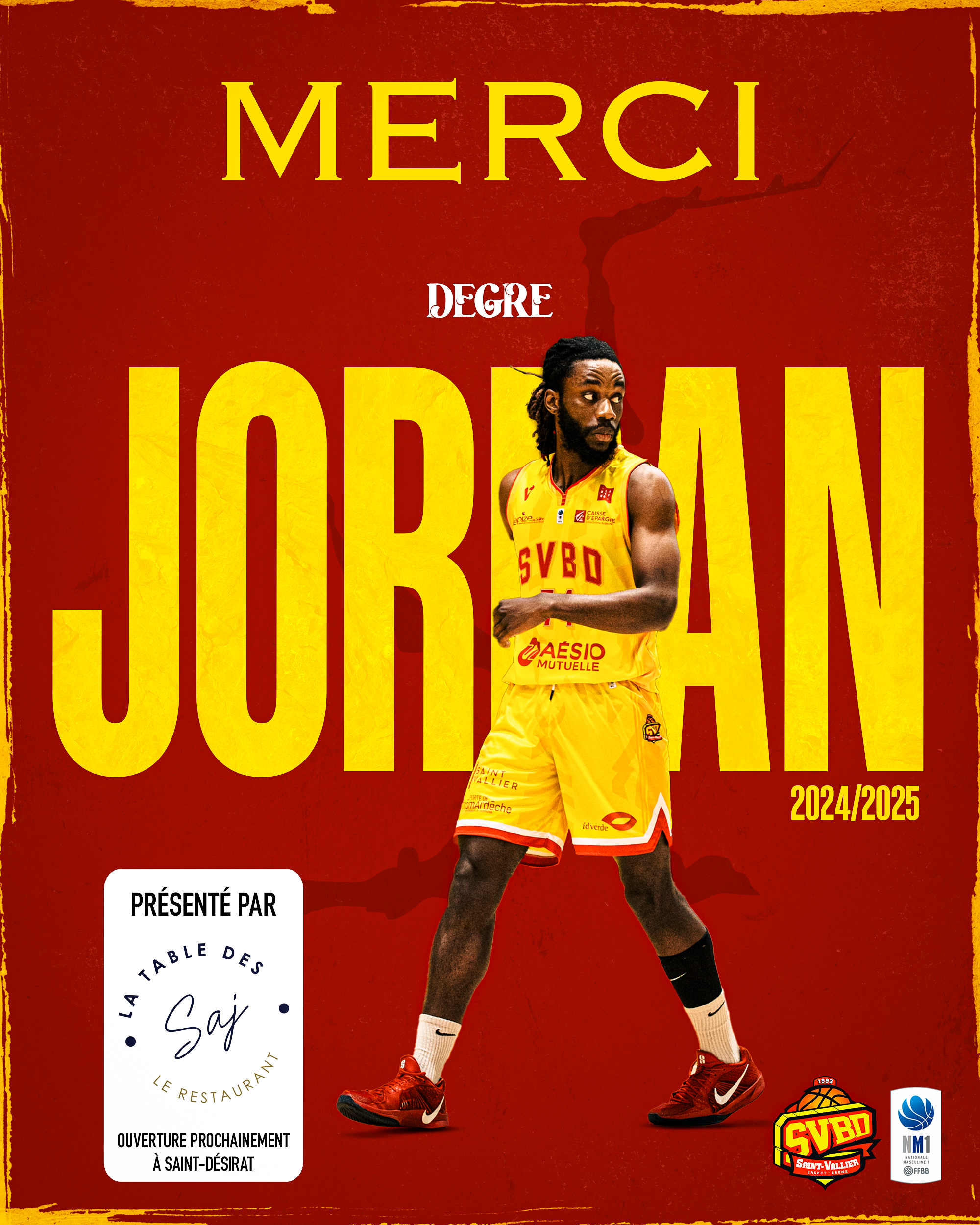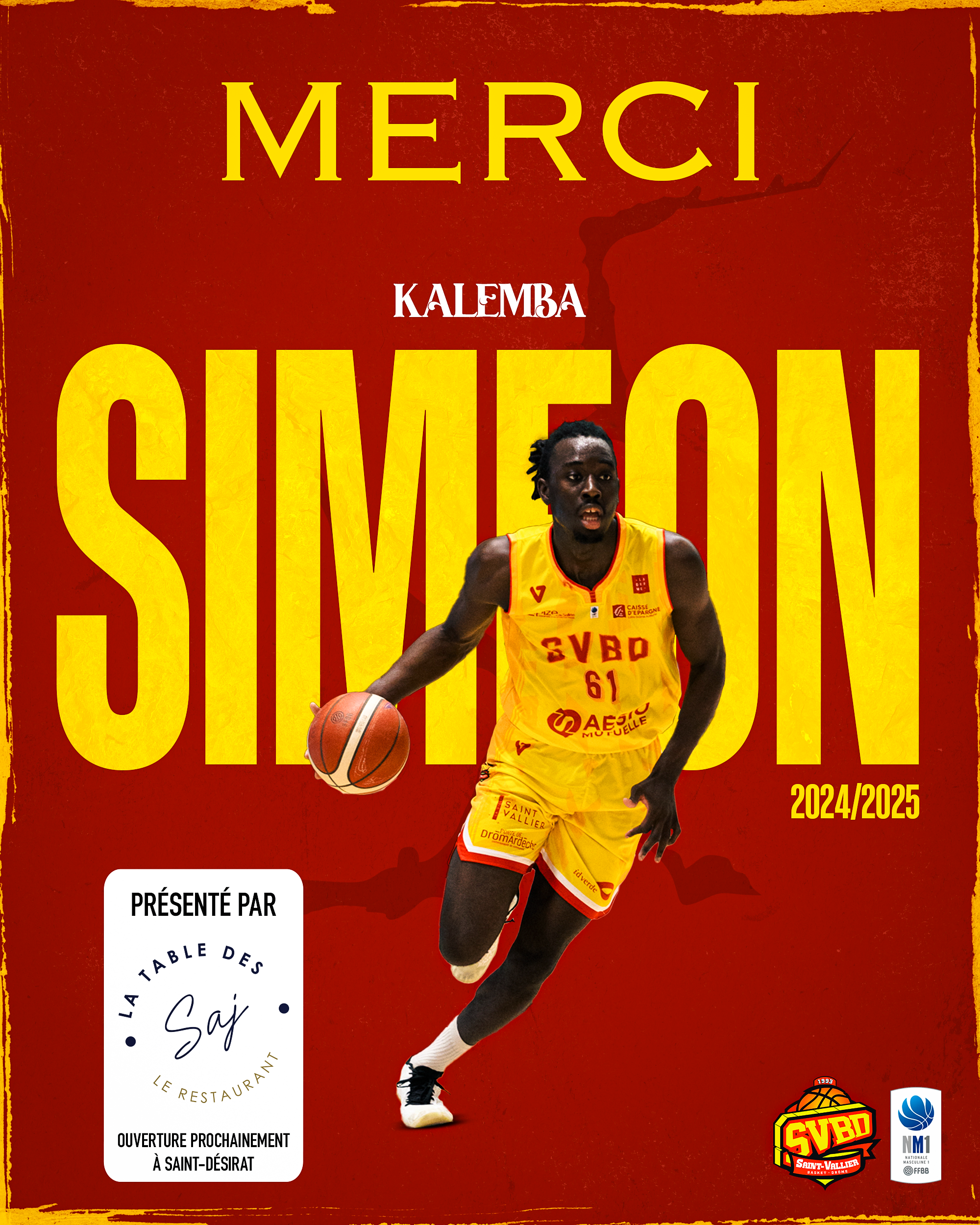 Le Saint-Vallier Basket Drôme vous annonce les départs de Siméon KALEMBA et Jordan DEGRE, après une saison au club.
